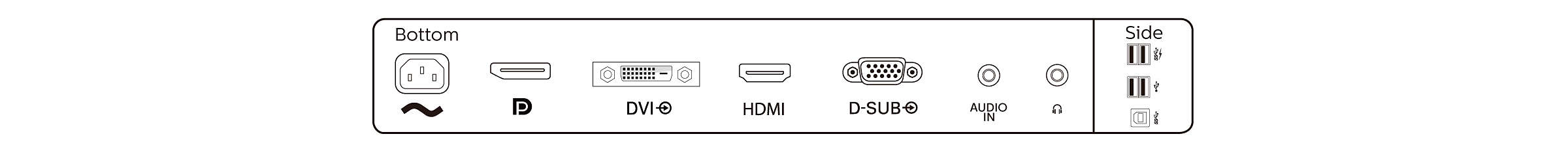 Audio (3, 5 mm), DisplayPort, HDMI, VGA |