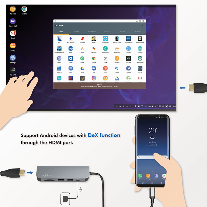Ondersteunt Android-apparaten met deX-functie, zodat je je smartphone kunt uitbreiden tot een desktopcomputer |