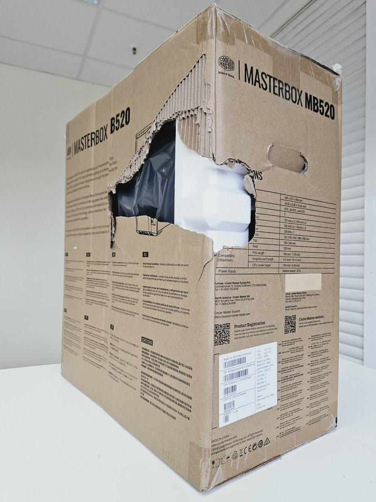 Verpakking beschadigd en een kleine beschadiging aan het zijpaneel, zie foto's |